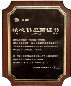 一汽解放汽車有限公司授予上海臼井公司“核心供應(yīng)商”證書。