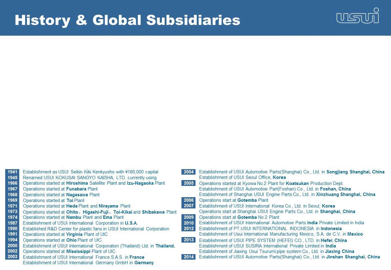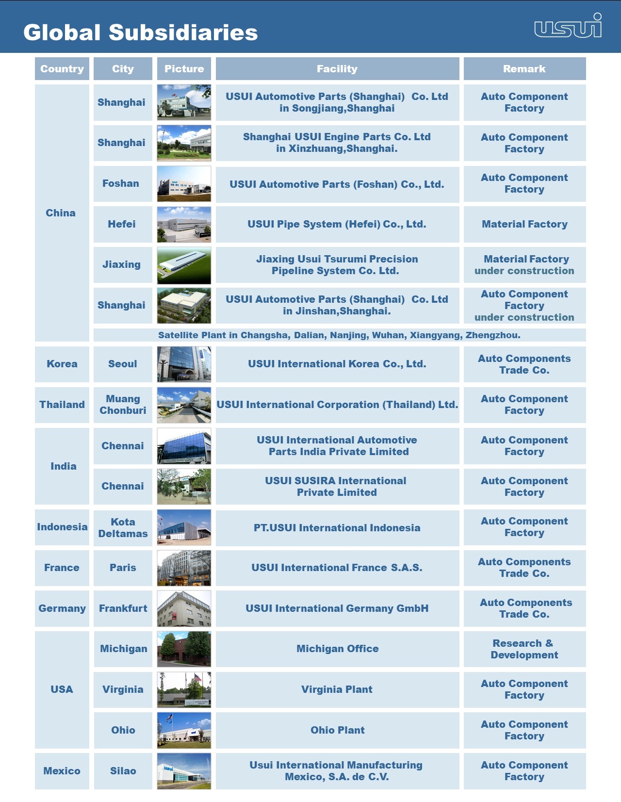 臼井國際在亞洲、歐洲和北美11個國家設(shè)有43家分支機(jī)構(gòu)。